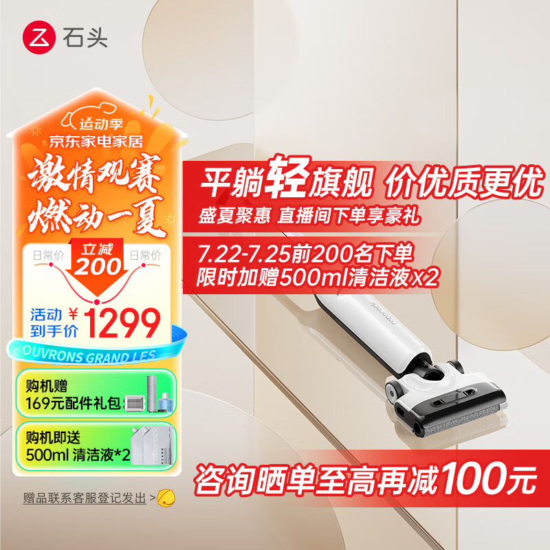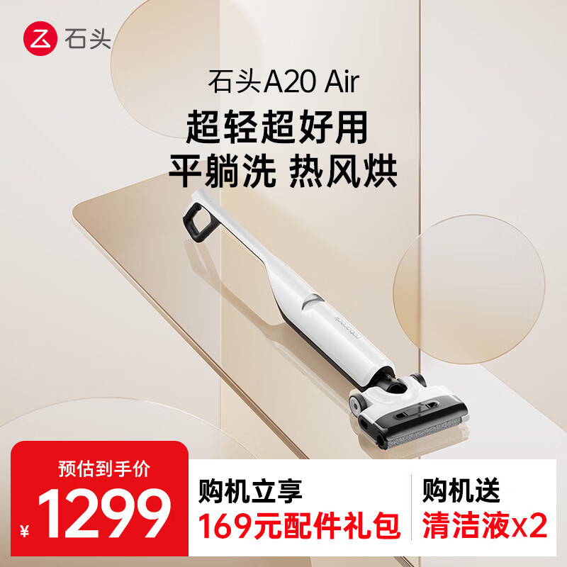 石头(roborock)A20 Air 【轻量机身 平躺洗地】家用热风烘干无线扫地吸尘洗拖一体拖地机价格:1499.00元!