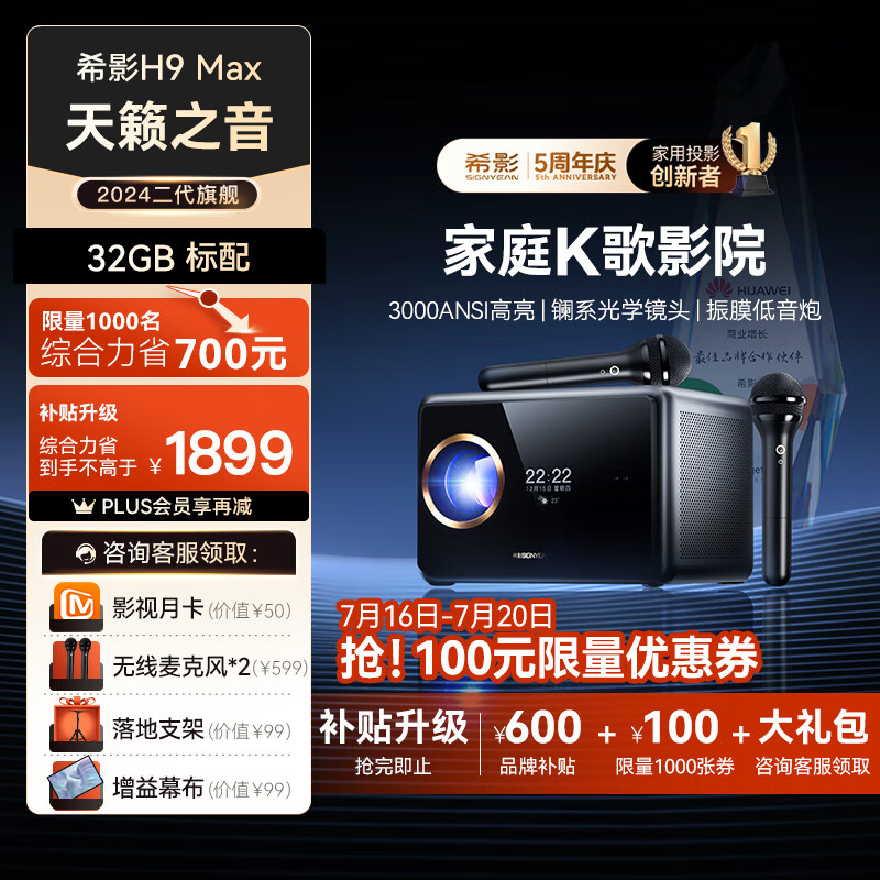 希影H9 Max二代 4K家庭K歌影院 家用投影仪 4K高清智能投影 卧室客厅投影机家庭影院 专属KTV价格:2599.00元!