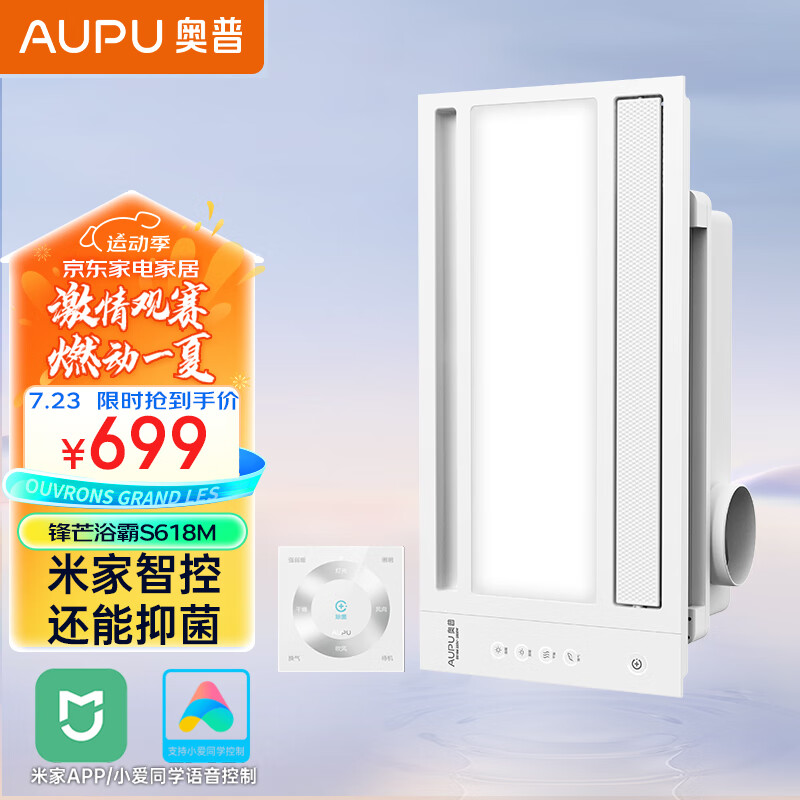 奥普(AUPU)浴霸S618M风暖浴霸 大摆页强弱风暖等离子除菌无线遥控已接入米家价格:1199.00元!