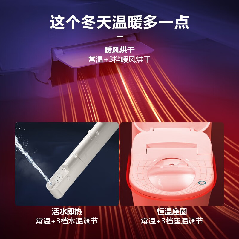 1、冲洗,加热,吹干,夜灯,遥控器,基本上该有的功能都有了。适合小马桶,这一点很难得。非要说缺点的话就是夜灯默认触控开启,好像不能设置为常关状态,没有外置过滤器,后期有需要的话可以自己装。不过综合价格因素,这是一款性价比很高的智能马桶盖。