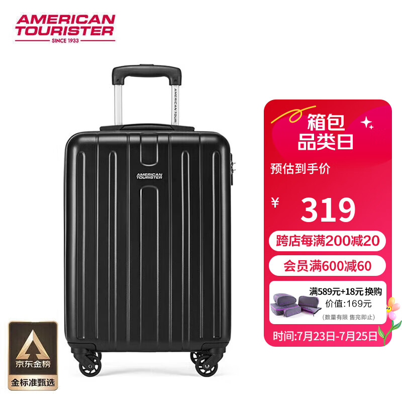 美旅箱包时尚条纹行李箱旅行登机箱大学生男女拉杆箱密码箱TC3黑色20英寸价格:419.00元!