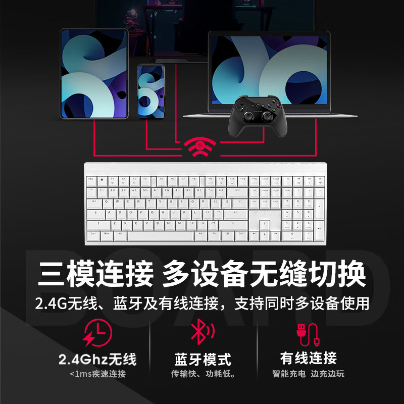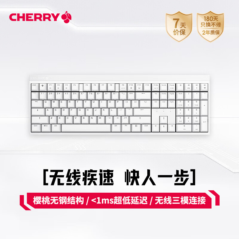 CHERRY樱桃 MX2.0S机械键盘 无线键盘 蓝牙有线三模 电竞 游戏键盘 办公电脑键盘 樱桃无钢结构 白色红轴价格:499.00元!