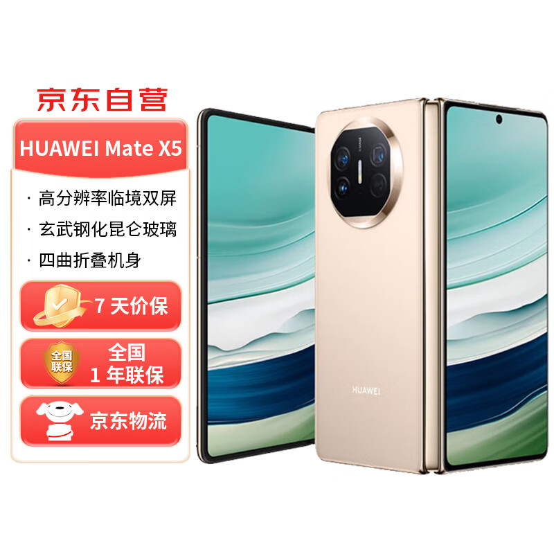 华为(HUAWEI)Mate X5 折叠屏手机 16GB+512GB 羽砂金价格:22999.00元!