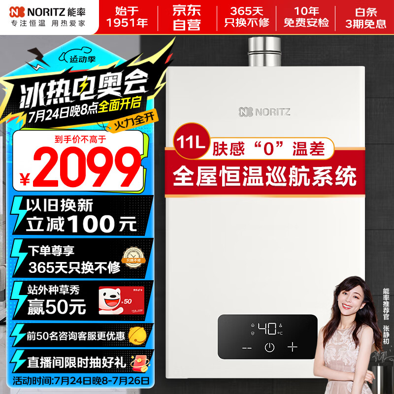能率(NORITZ)燃气热水器11升 全屋恒温巡航 多点用水恒温 GQ-11EA2FEX(JSQ23-EA2)天然气防冻价格:2099.00元!
