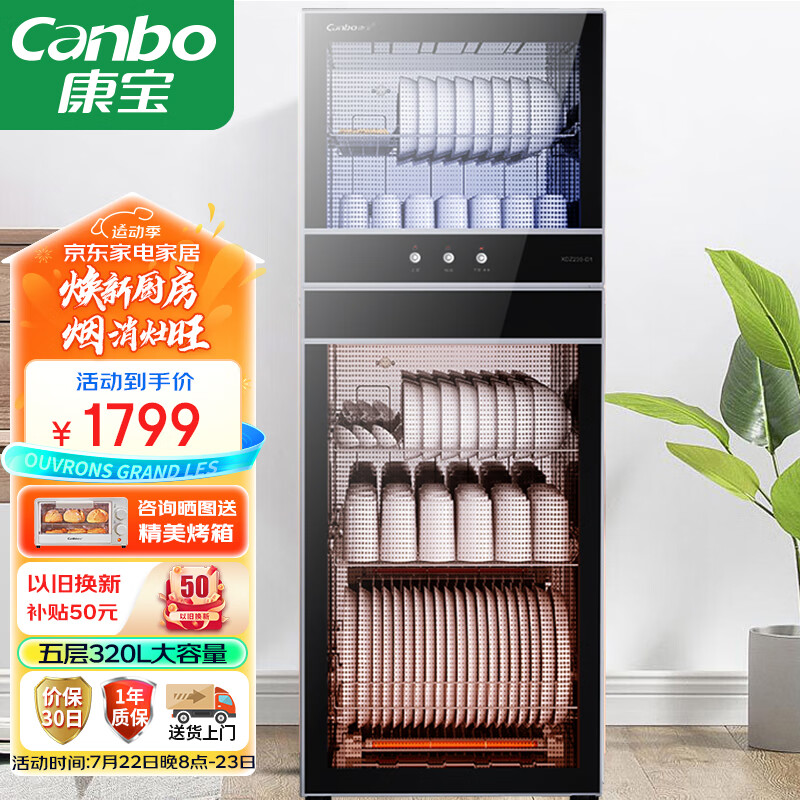 康宝(Canbo)消毒柜 家用 立式消毒碗柜大容量 商用碗筷收纳柜餐具奶瓶茶杯消毒柜双门高温二碗柜XDZ320-D1价格:1799.00元!