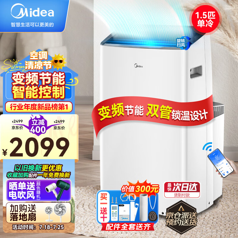 美的(Midea)移动空调1.5匹单冷变频 家用厨房空调一体机免安装免排水 KY-35/BP3N8Y-PT 京仓派送价格:2099.00元!