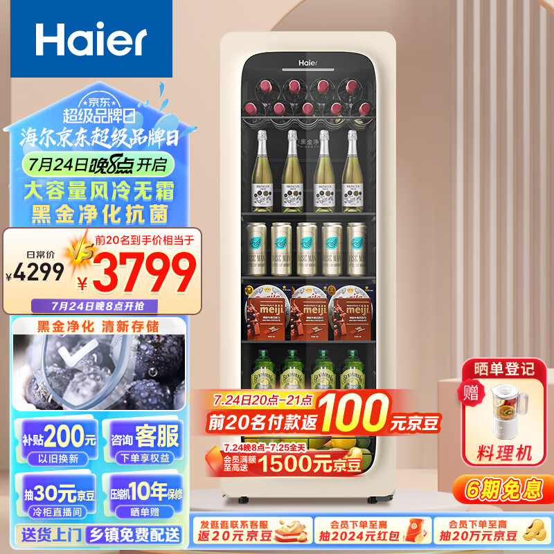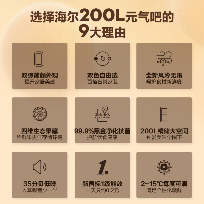 海尔200升家用客厅办公室冷藏柜暖藏冰吧元气吧茶叶饮料水果蔬菜小型冰箱象牙米LC-200WLH9EY1以旧换新价格:3899.00元!