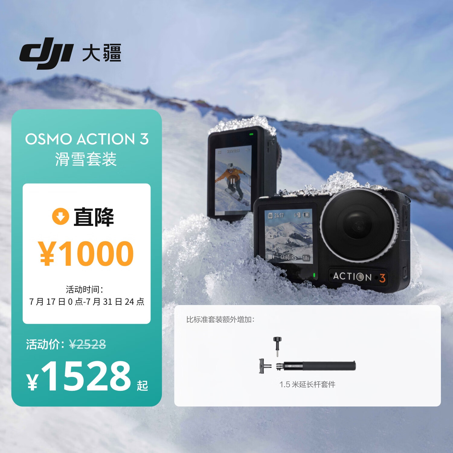 大疆 DJI Osmo Action 3 滑雪套装 运动相机 4K高清增稳户外手持Vlog相机 滑雪头戴摄像机+128G内存卡价格:1622.90元!