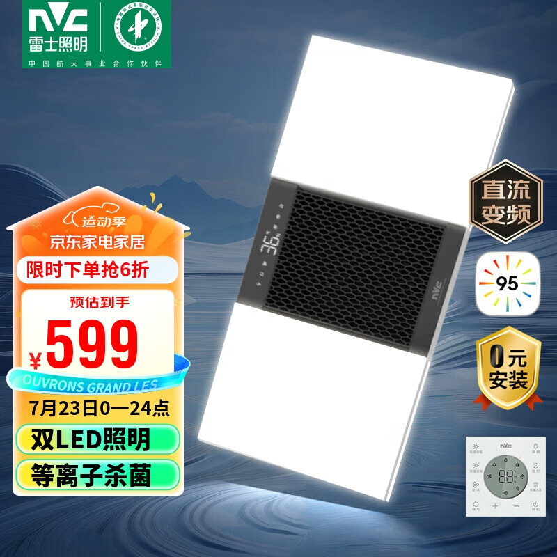 雷士(NVC)智能人感无边界双LED灯浴霸暖风照明排气一体浴室集成吊顶Y358价格:998.00元!