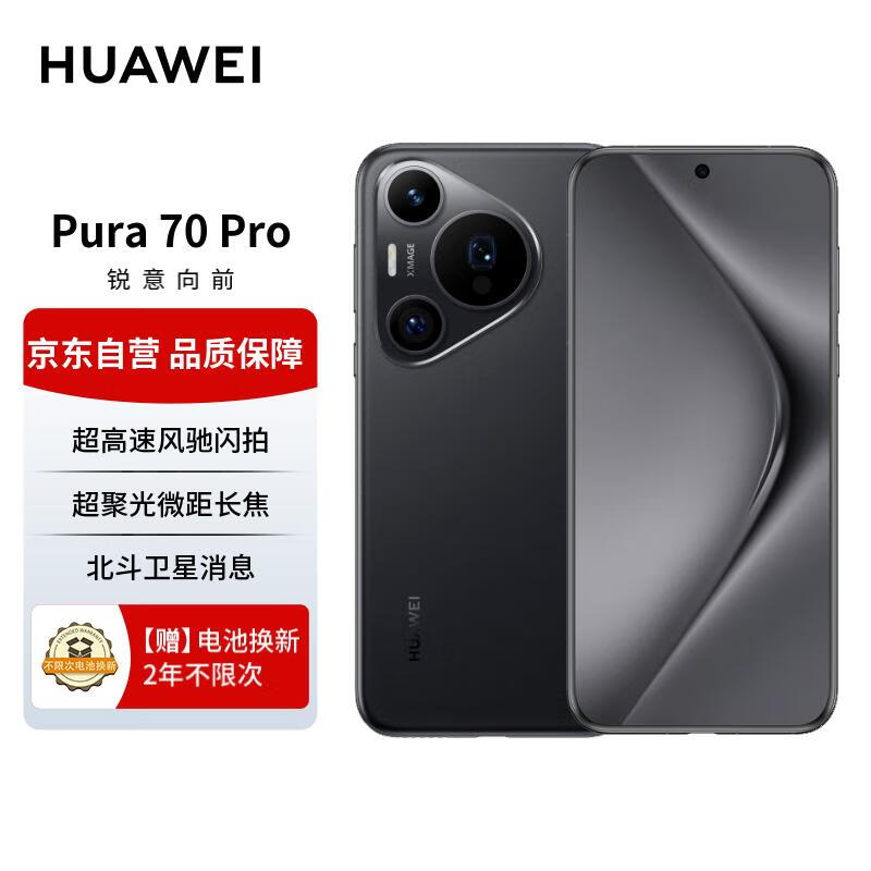 华为Pura70Pro 羽砂黑12GB+512GB 超高速风驰闪拍超聚光微距长焦 华为P70智能手机【2年电池换新套装】价格:6899.00元!