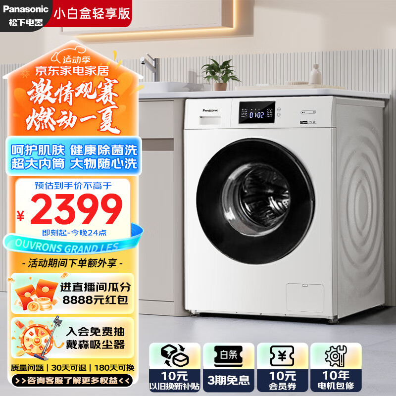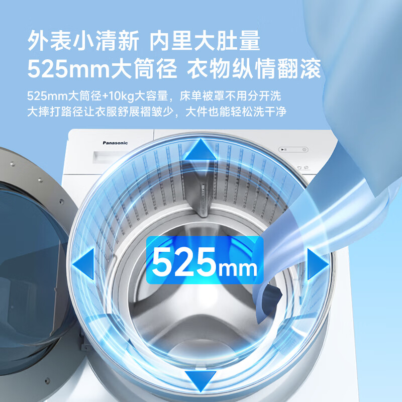 松下(Panasonic)滚筒洗衣机全自动【小白盒轻享版】10公斤 除菌除螨 525mm大筒径 筒自洁XQG100-51JN价格:2399.00元!