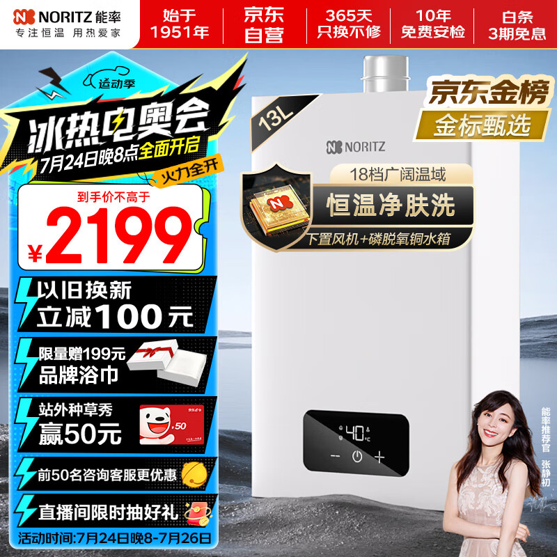 能率(NORITZ)13升燃气热水器天然气 全屋恒温巡航 多点用水 下置风机 GQ-13EA2FEX【金榜认证】以旧换新价格:2199.00元!