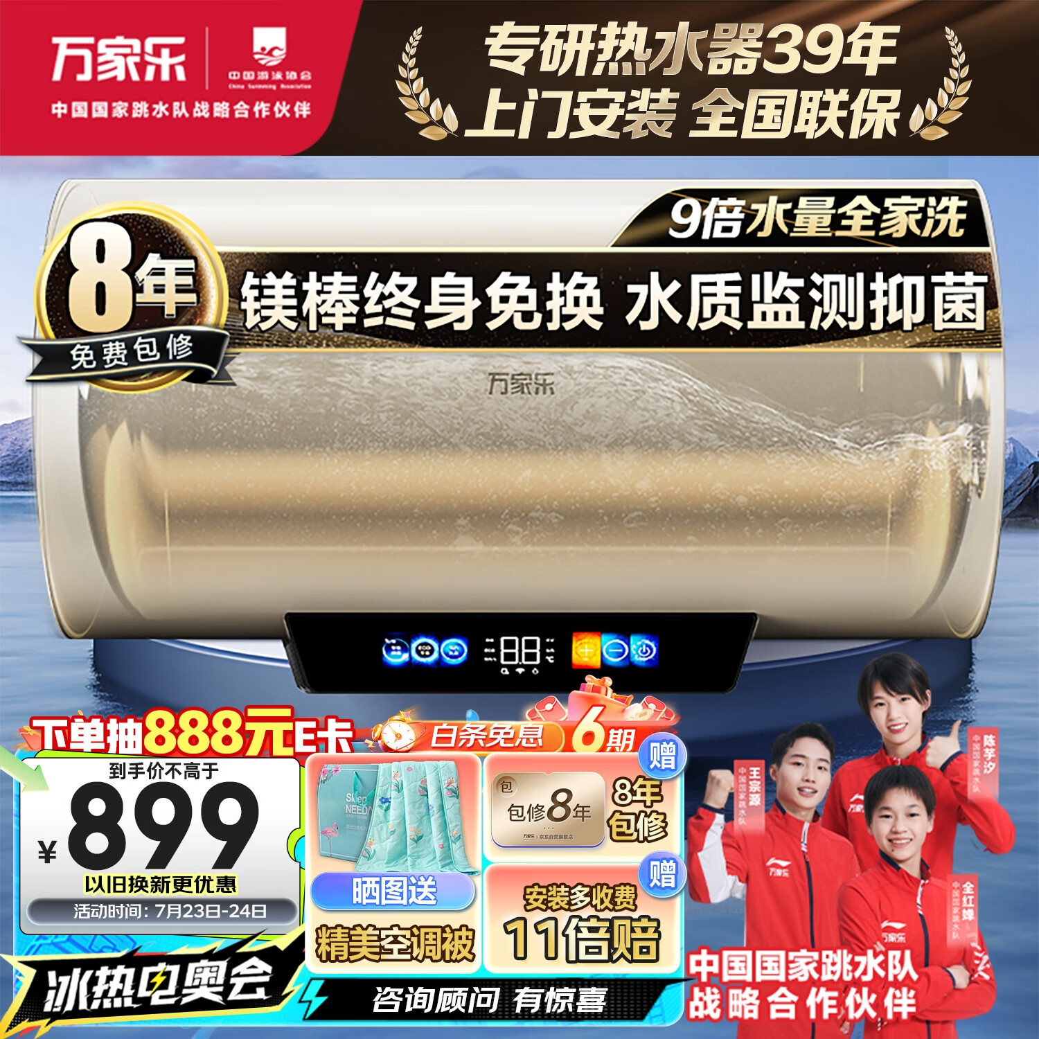 万家乐80升电热水器 速热一级能效 镁棒免换 水质检测 手机远程操作 家用储水式D80-FD5 以旧换新价格:899.00元!