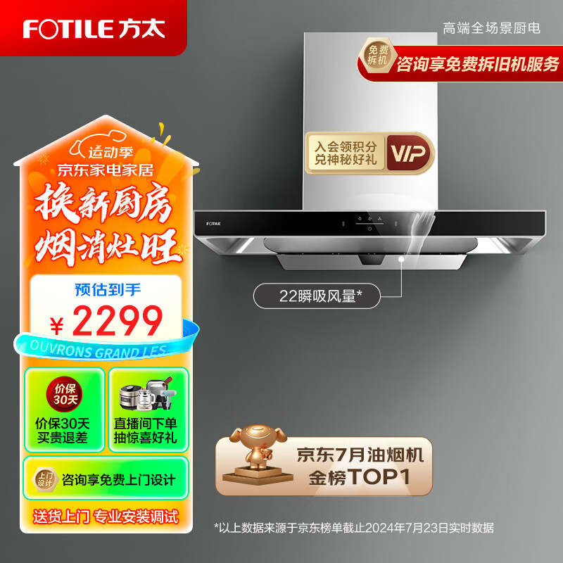 方太家用欧式抽油烟机 顶吸式 挥手智控 22m3/min 一键瞬吸 大风量EMC5A价格:2299.00元!