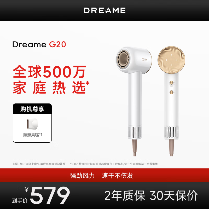 追觅韶光G20家用电吹风恒温速干吹风筒负离子高速吹风机高速吹护机 赠男生女生七夕情人节礼物 云锦白价格:599.00元!