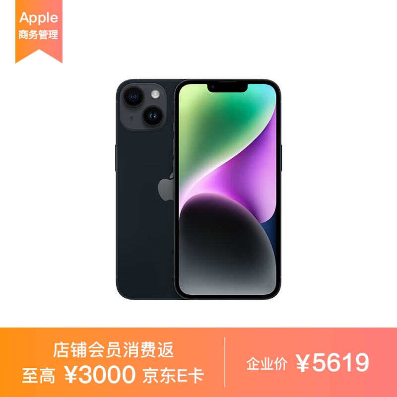 Apple iPhone 14 256GB 午夜色A2884手机 支持移动联通电信5G MPVU3CH/A【企业客户专享】价格:5659.00元!