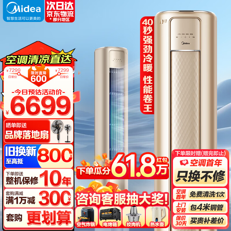 美的(Midea)3匹 风尊 新一级能效变频冷暖 加大风口 智能家用客厅立式空调柜机 KFR-72LW/N8MZB1 多仓直发价格:6699.00元!