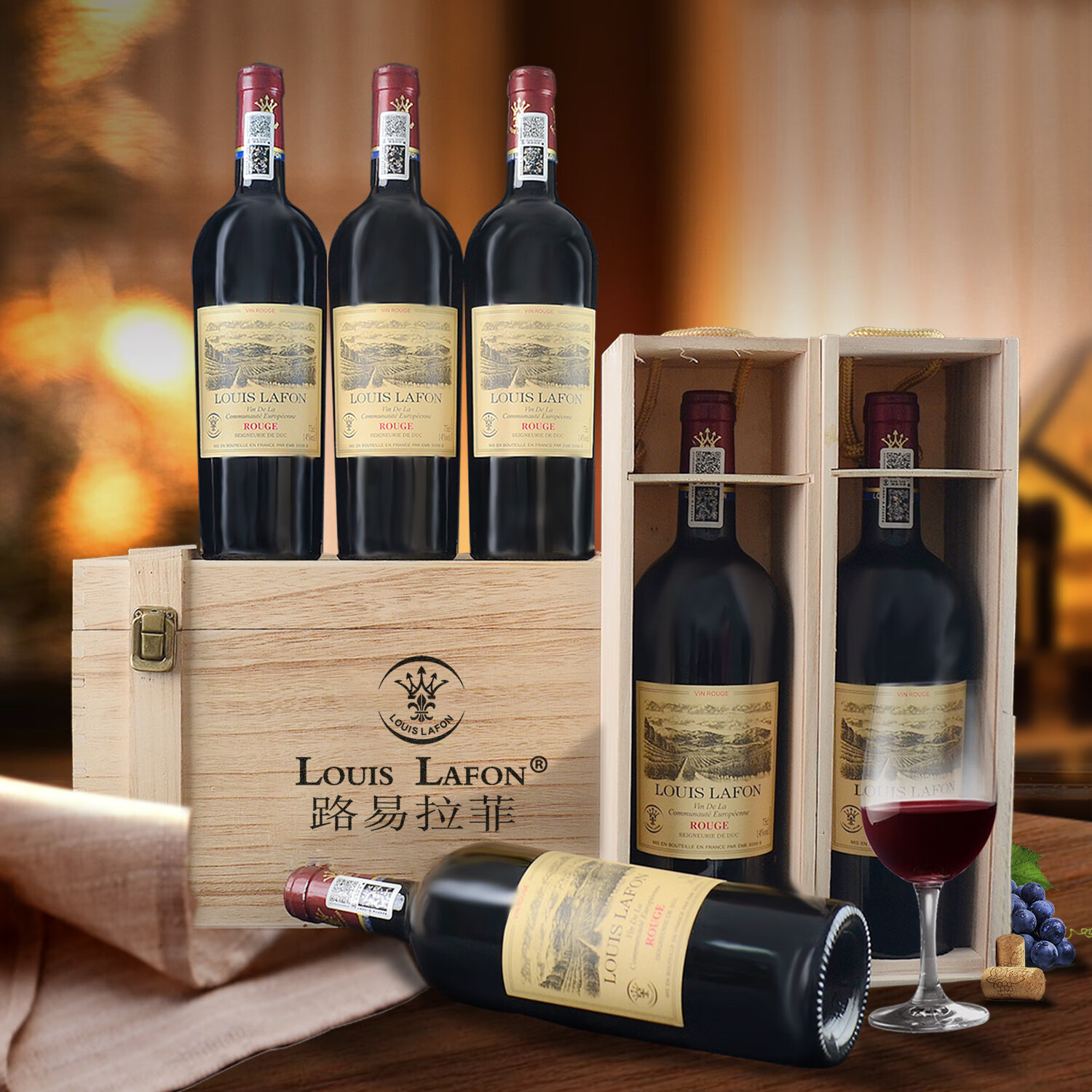 路易拉菲(LOUIS LAFON)法国原瓶进口红酒整箱礼盒梅洛干红葡萄酒750ml*6瓶木箱送礼装价格:579.00元!
