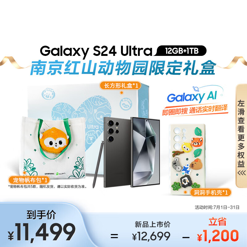 三星(SAMSUNG)Galaxy S24 Ultra AI手机 第三代骁龙8 游戏手机 南京红山动物园限定礼盒 12GB+1TB 钛黑价格:11499.00元!