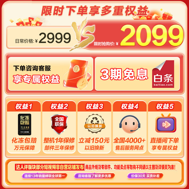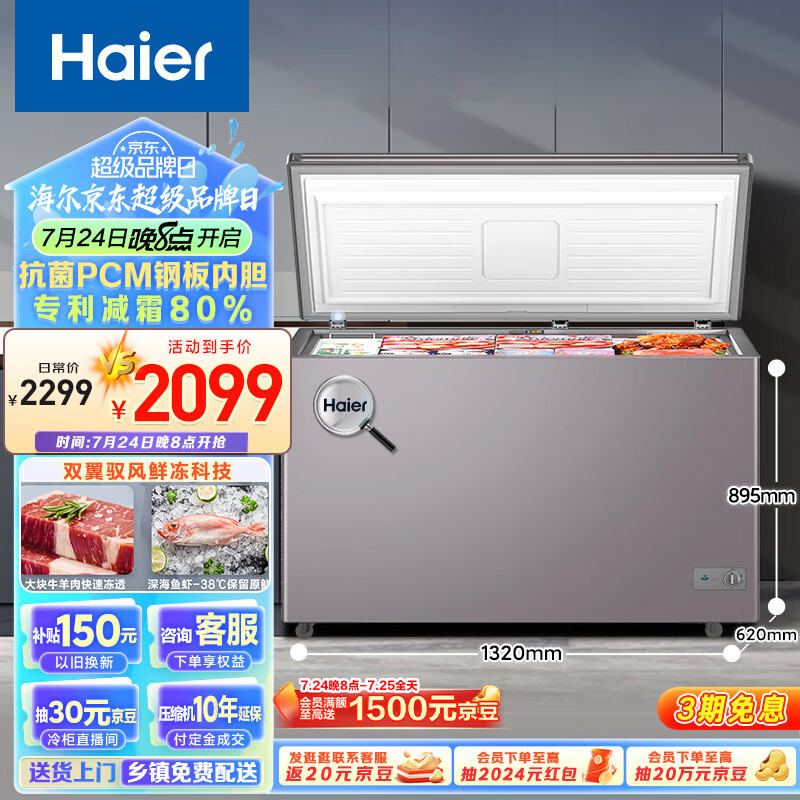 海尔368升低霜卧式商用家用冰柜 商用大容量冷藏柜冷冻柜冰柜家用大冷柜BC/BD-368GHPCD以旧换新价格:2099.00元!