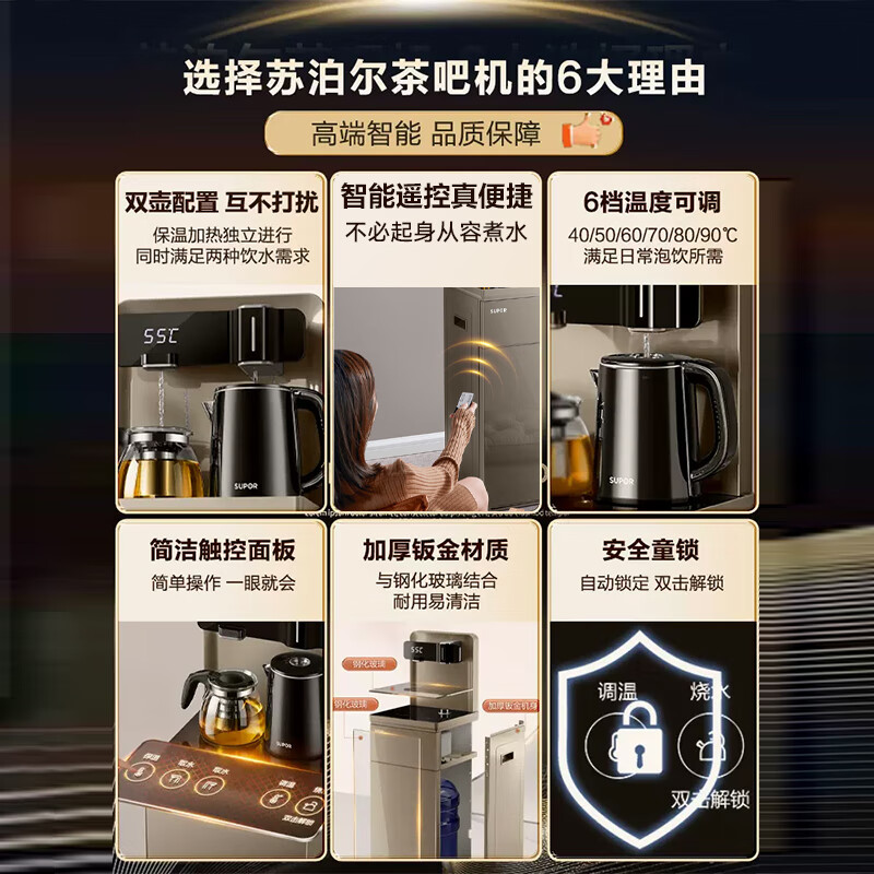 苏泊尔(SUPOR)茶吧机一体柜316L母婴级不锈钢家用高端饮水机下置水桶烧水壶电热水壶全自动立式水壶泡茶机CBJ33价格:389.00元!