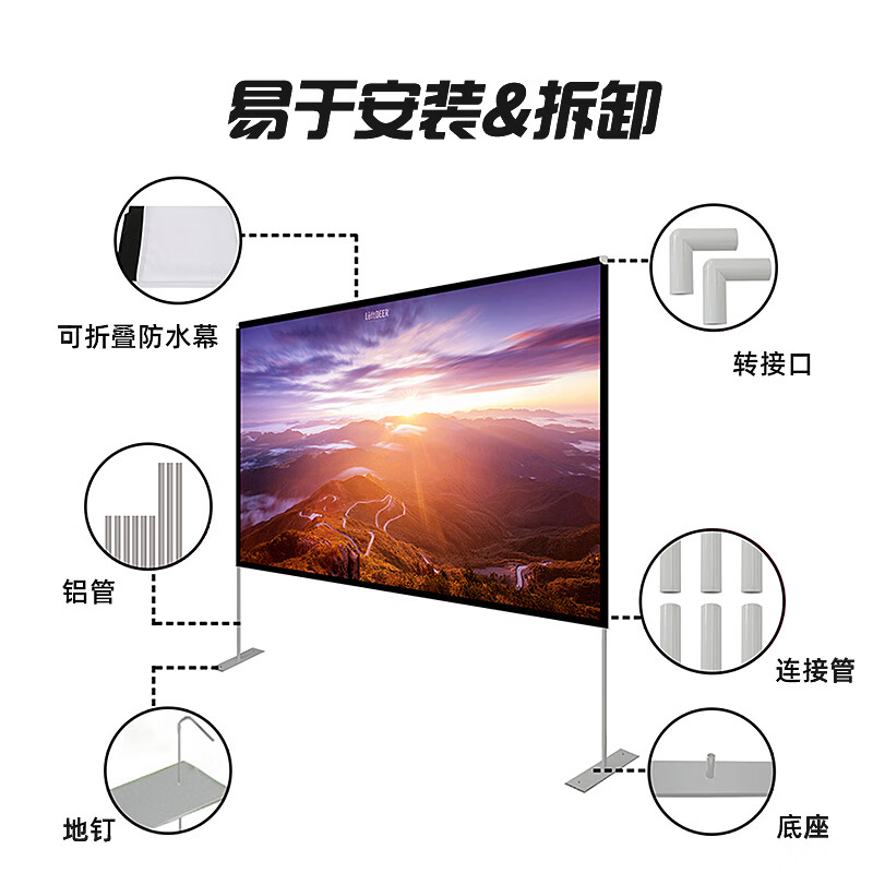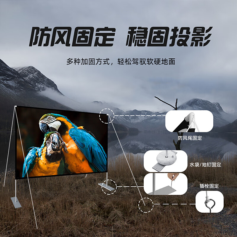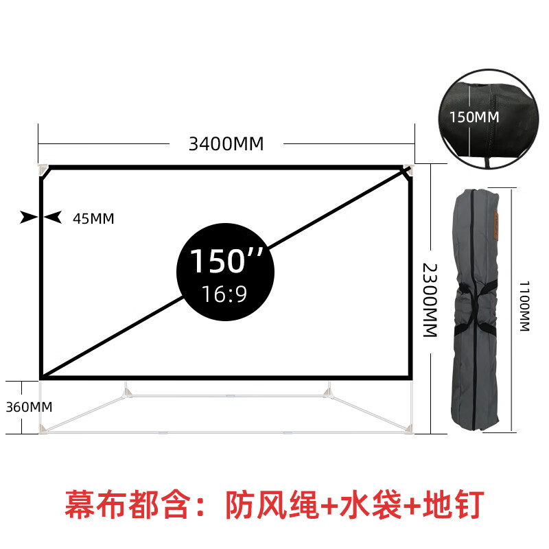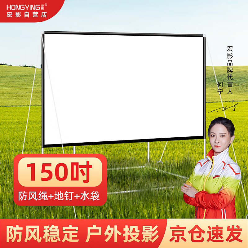 宏影(HONGYING)便携投影幕布户外手动支架落地投影仪幕布支架杆简易方便组装家用幕布150英寸价格:599.00元!