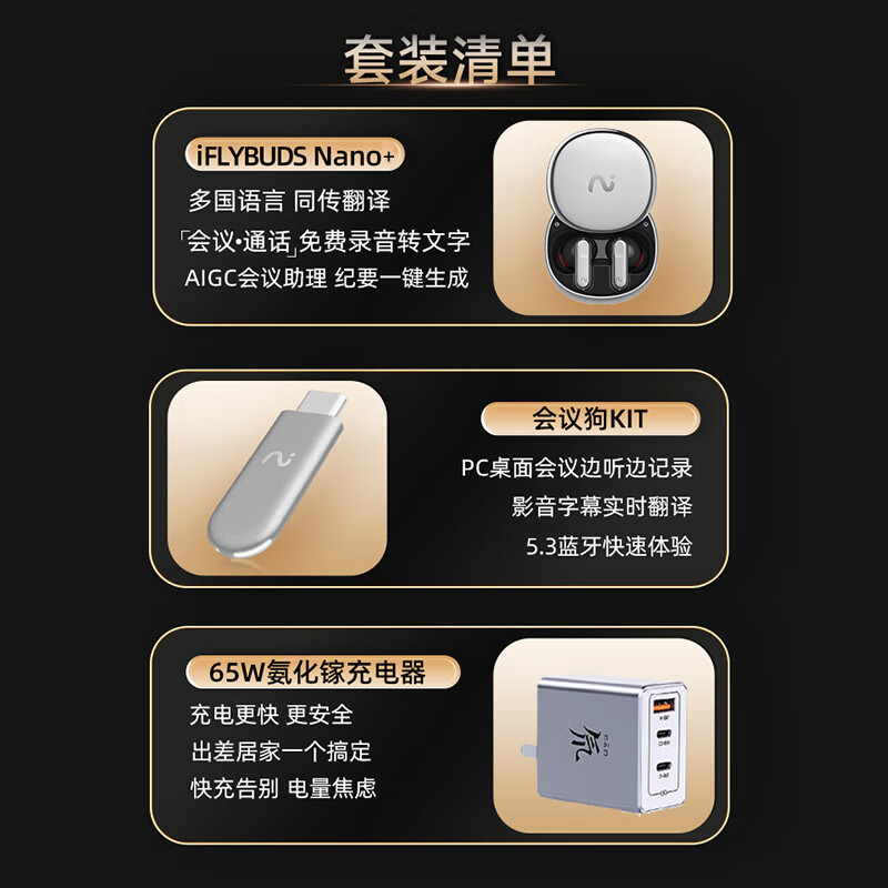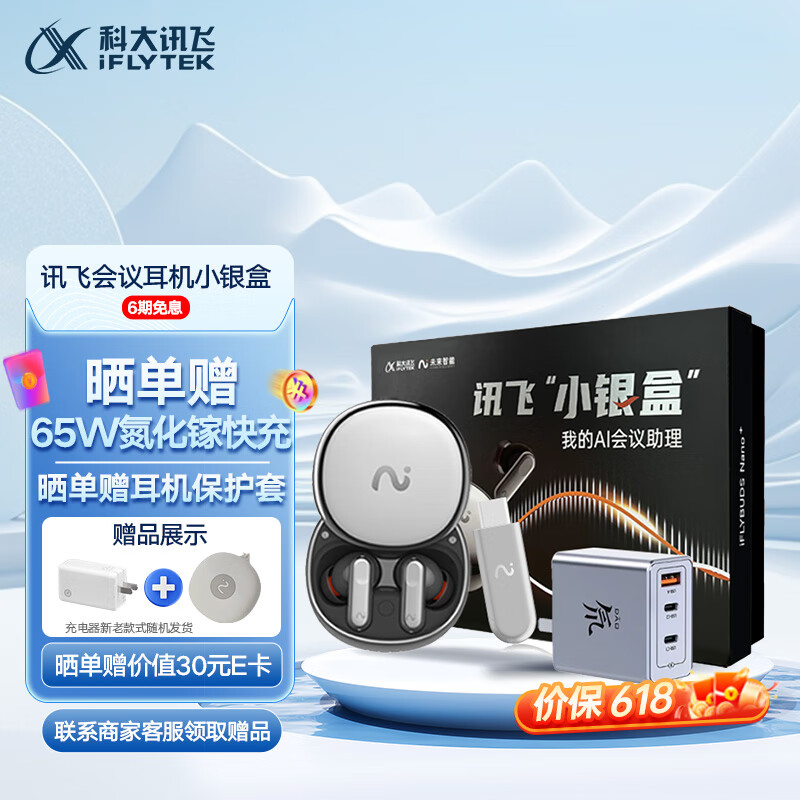 科大讯飞录音降噪会议耳机Nano+ 无线蓝牙耳机小银盒套装 主动降噪 同传听译 录音转文字 苹果华为通用价格:1249.00元!