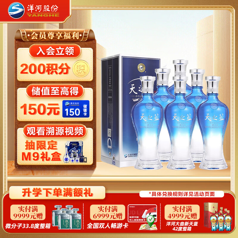 洋河 蓝色经典 天之蓝 42度 520ml*6瓶 整箱装 绵柔浓香型白酒价格:2208.00元!