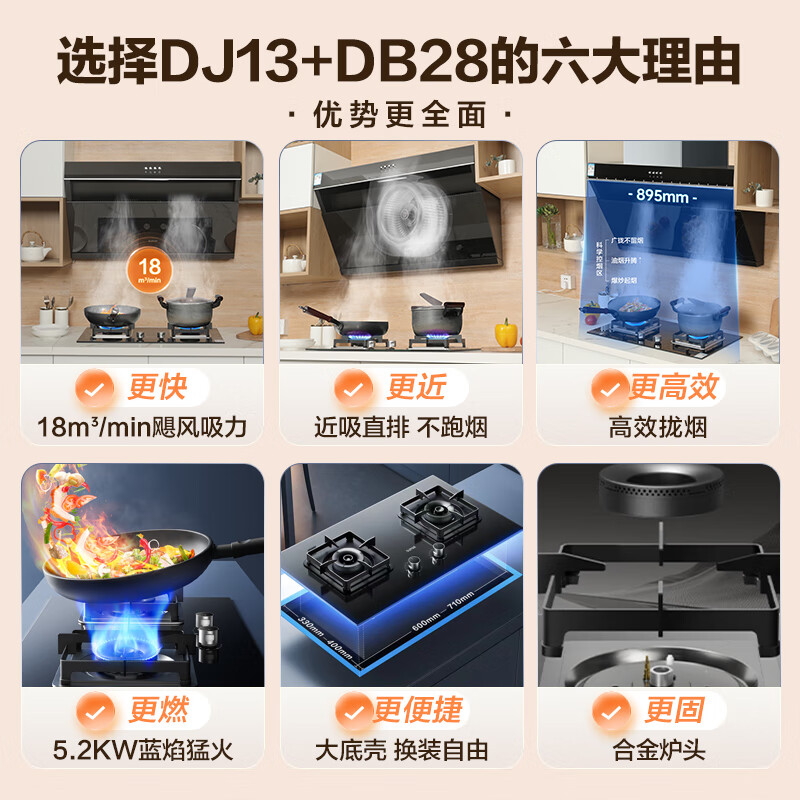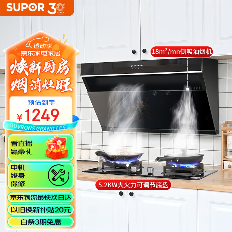 苏泊尔(SUPOR) 抽油烟机烟灶套装 18立方爆炒侧吸式家用吸油烟机燃气灶套装 可调节底盘DJ13+DB28液价格:1249.00元!