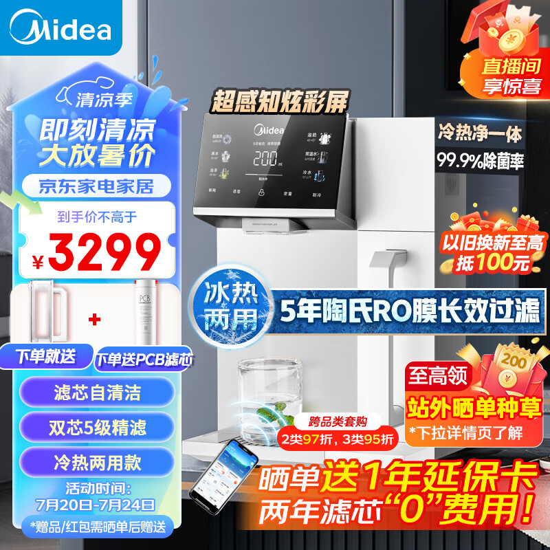 美的(Midea)魔方台式净水器加热直饮一体机净饮机冷热饮水机家用即热式净饮一体机RO反渗透免安装 JD2288T-RO价格:3299.00元!