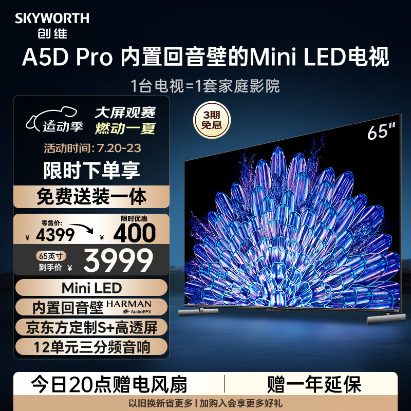创维电视65A5D Pro 65英寸内置回音壁mini led电视机 智慧屏液晶4K超薄平板彩电 K歌智能家电 游戏电视价格:3999.00元!