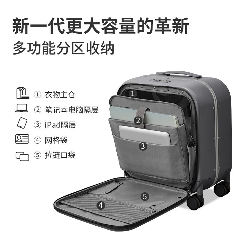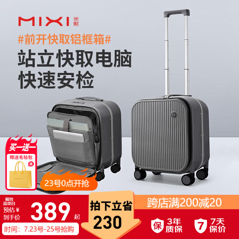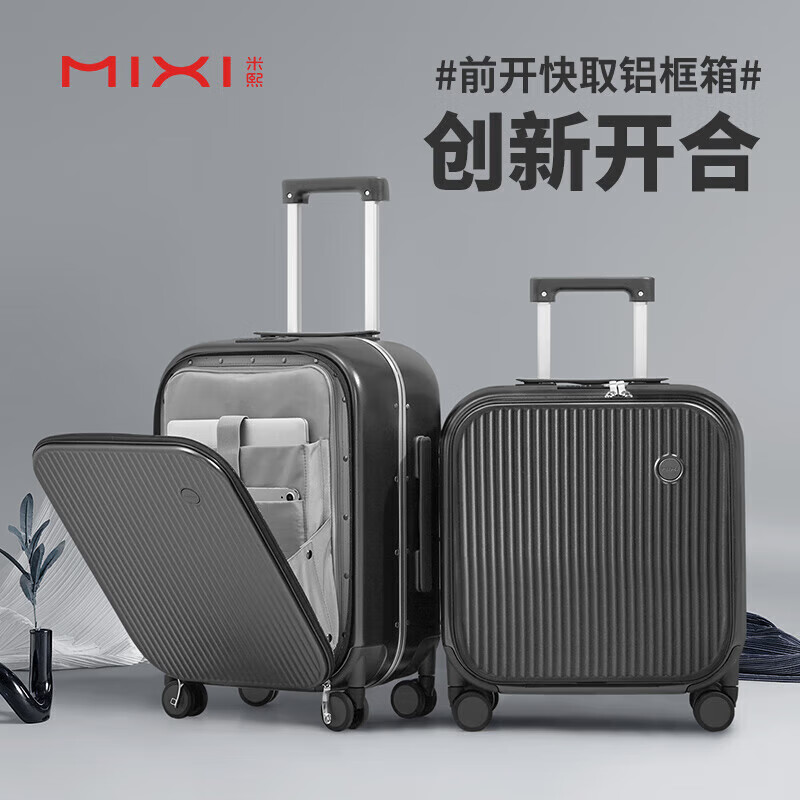 米熙前开盖商务铝框拉杆箱子男行李箱女密码箱包登机箱18英寸矿岩灰70价格:619.00元!