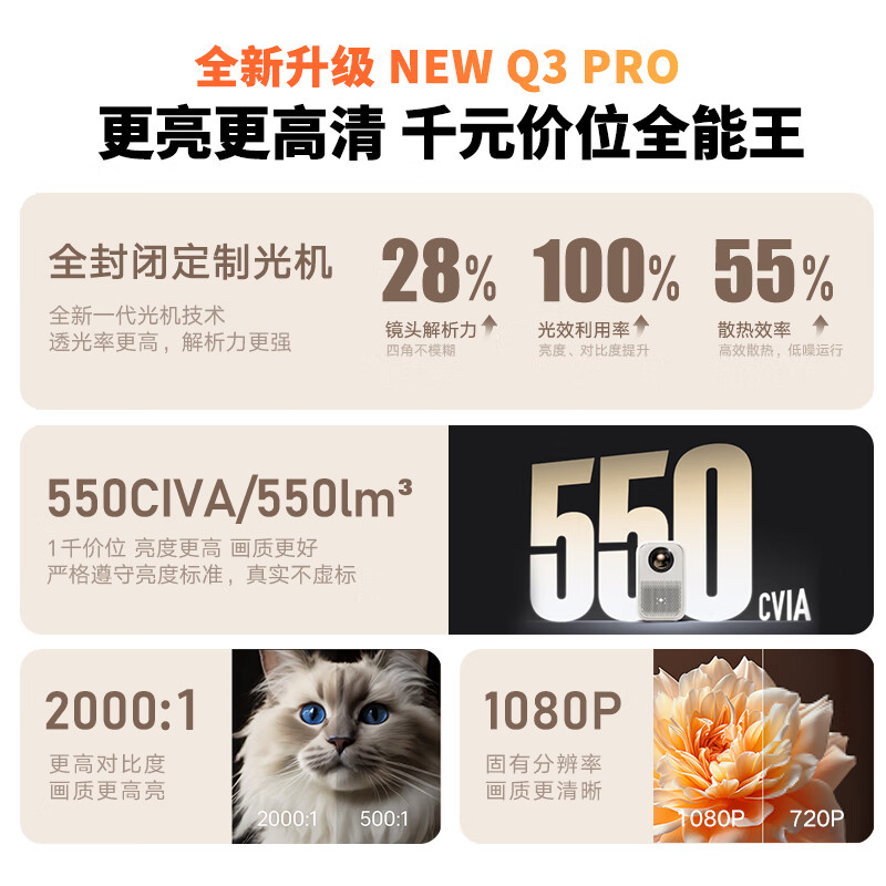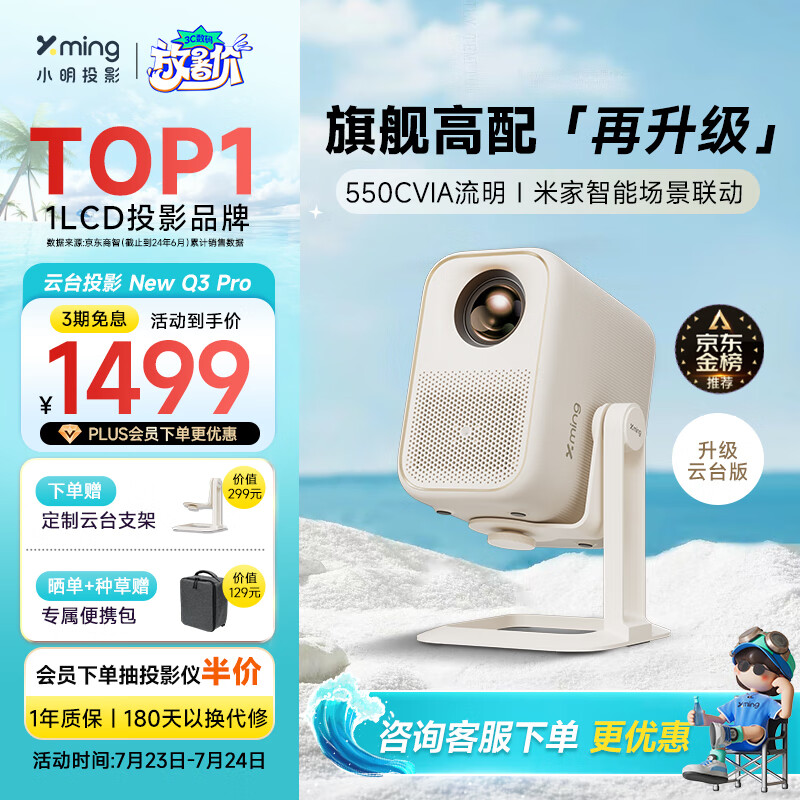 小明New Q3 Pro 云台投影仪家用 1080P高清投影机便携家庭影院( 杜比音效 米家智能场景 远场语音 )价格:1499.00元!