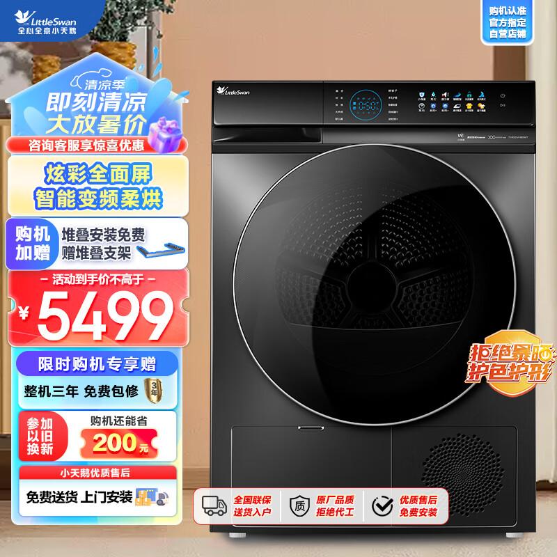 小天鹅(LittleSwan) 烘干机 热泵式 干衣机家用 紫外线除菌 BLDC变频电机 10公斤 京东小家 TH100VH89WT价格:5499.00元!