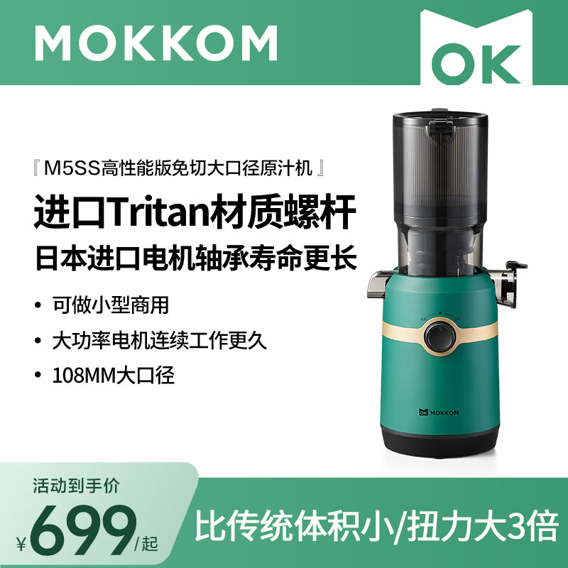 mokkom磨客原汁机榨汁机渣汁分离大口径家用多功能果汁机小型榨汁杯养生壶豆浆破壁料理机升级M5SS墨绿色价格:679.00元!