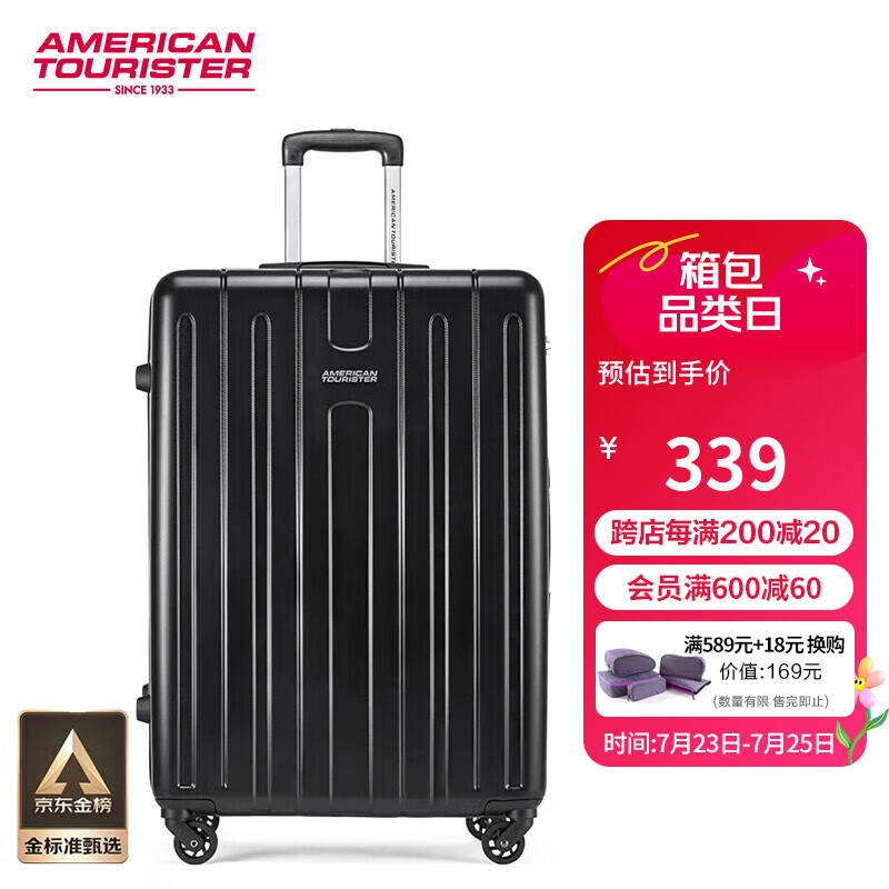 美旅箱包时尚条纹行李箱男女大学生旅行箱大容量拉杆箱TC3黑色24英寸价格:439.00元!