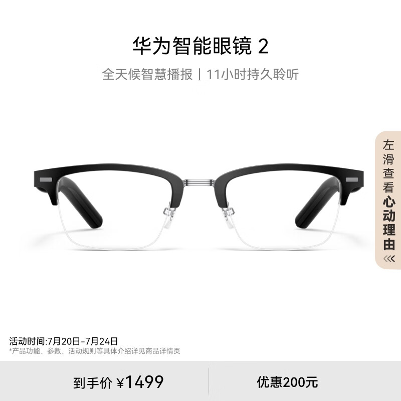 华为耳机 智能眼镜 2 开放式耳机 方形半框光学镜 无线双耳立体声/手势控制价格:1499.00元!
