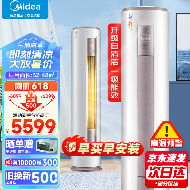 美的空调 3匹智行 新一级能效变频冷暖 智能家电 客厅立式空调柜机 KFR-72LW/BDN8Y-YH200(1)A价格:5599.00元!