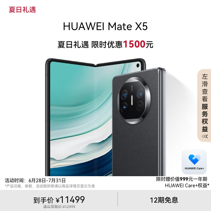 华为(HUAWEI)Mate X5 折叠屏手机 12GB+256GB 羽砂黑价格:11499.00元!