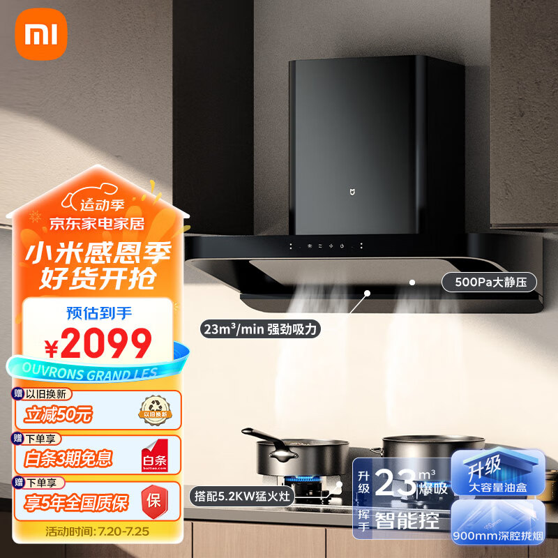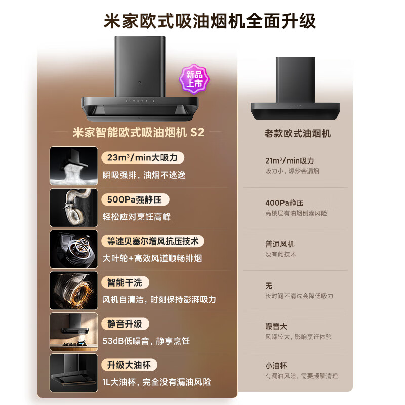 米家小米智能欧式吸油烟机S2顶吸式家用自清洁脱排洗抽油烟机23立方爆炒大吸力烟灶套装 CXW-260-MJ01C价格:2099.00元!