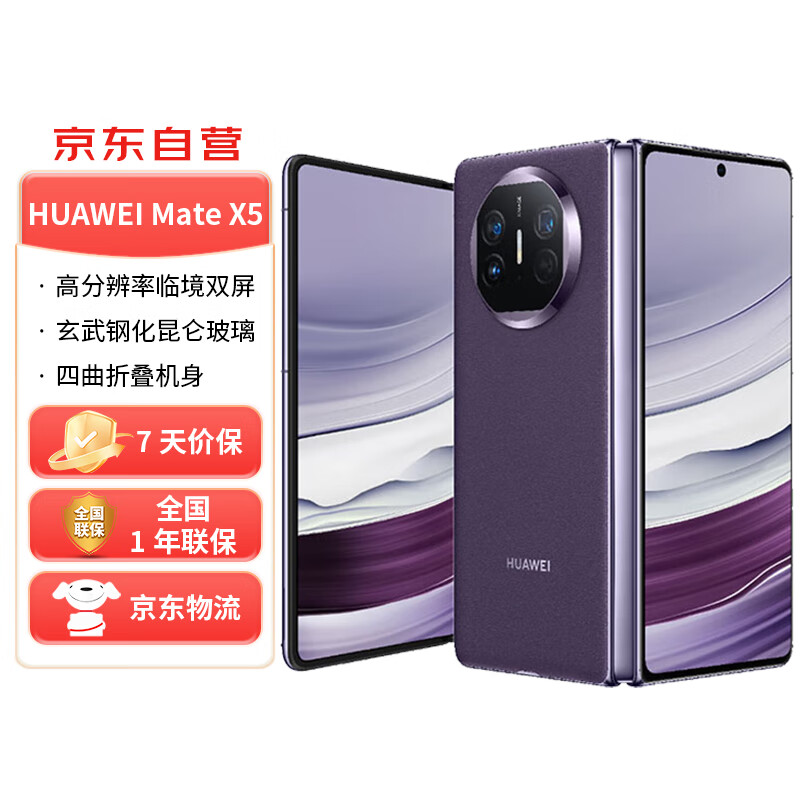 华为(HUAWEI)华为(HUAWEI) Mate X5 折叠屏手机 12GB+256GB 幻影紫价格:11499.00元!