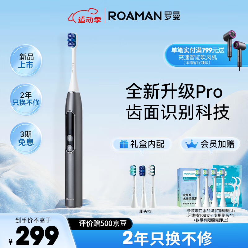 罗曼(ROAMAN)智能声波电动牙刷情侣款生日礼物 5种模式牙医推荐 网红小果刷升级版T10Pro 灰色价格:349.00元!