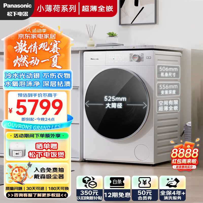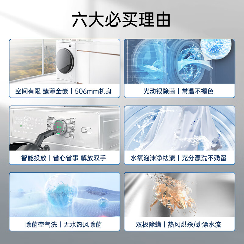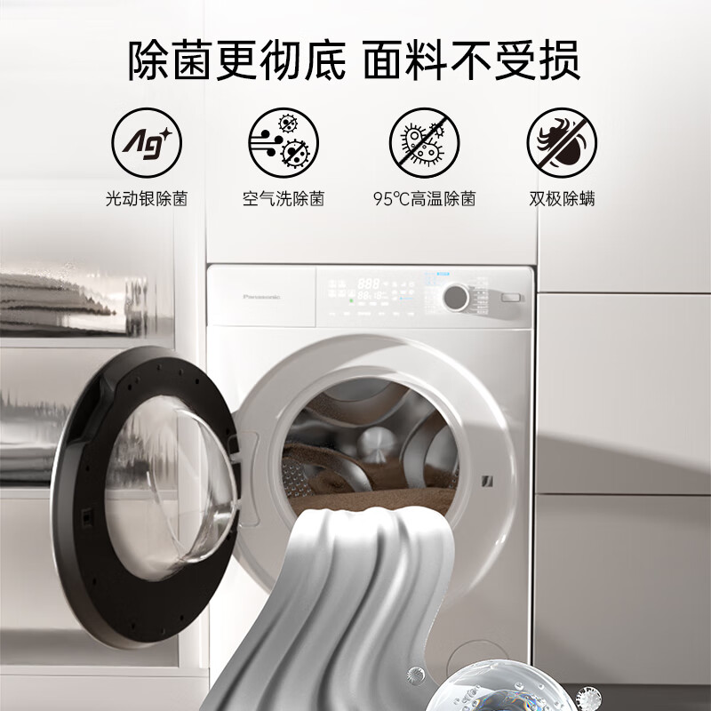松下(Panasonic)滚筒洗衣机全自动506超薄全嵌【小薄荷SD Pro】10公斤洗烘一体 光动银 智投 户外服XQG100-M1FD7价格:5799.00元!