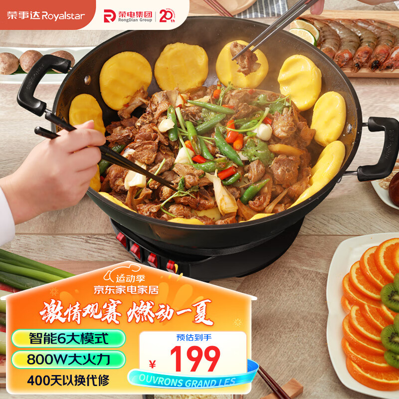 荣事达 电炒锅 家用铸铁多功能电热锅多用途锅山东锅电煮锅电火锅多人电蒸锅 RDTF-34价格:199.00元!