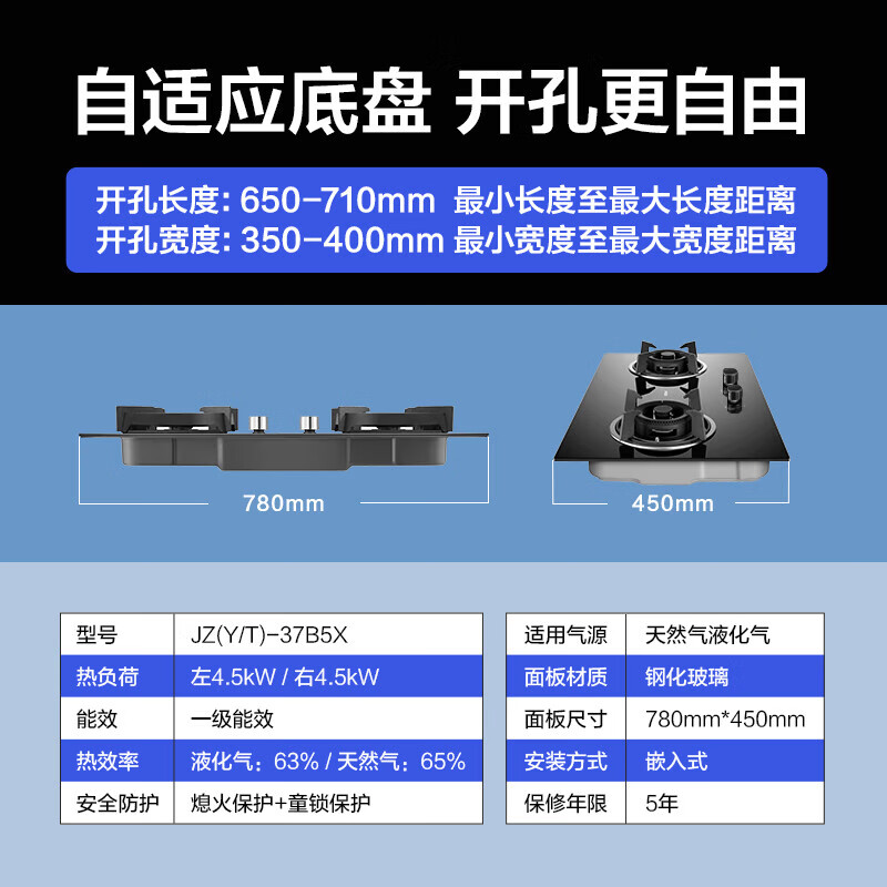老板燃气灶猛火4.7kW燃气灶具天然气灶嵌入式钢化玻璃灶天然气灶八档精控37B5X 【店铺热销】37B5X燃气灶价格:1599.00元!