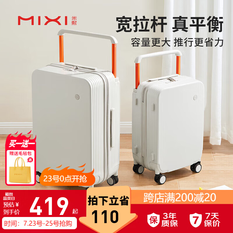 米熙高颜值宽拉杆箱子24英寸行李箱大容量旅行箱子女密码箱包男烟白82价格:529.00元!