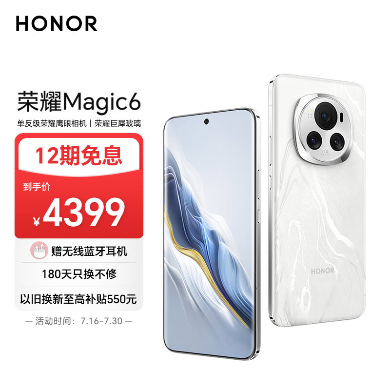荣耀Magic6 单反级荣耀鹰眼相机 荣耀巨犀玻璃 第三代骁龙8芯片 16GB+256GB 祁连雪 5G AI手机价格:4399.00元!