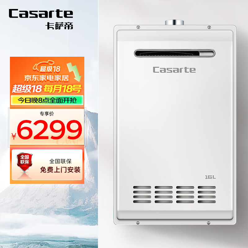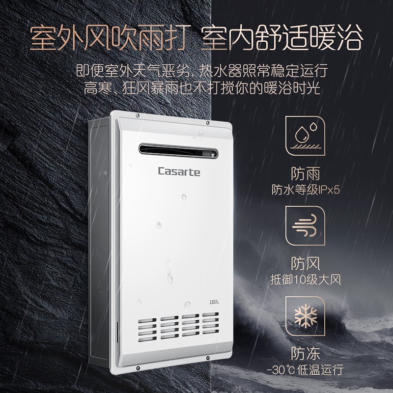 卡萨帝(Casarte)【CRF3】16升燃气热水器 室外机 防雷防冻防水 恒温零冷水 线控+Wifi双模 JSW31-16CRF3BWU1价格:6299.00元!