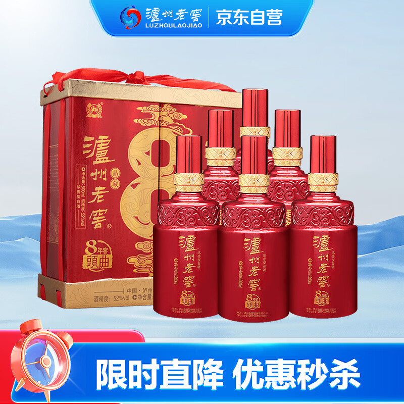 泸州老窖八年窖头曲 品藏 浓香型白酒 52度 500ml*2*3 礼盒整箱装送礼价格:638.00元!