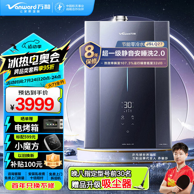 万和(Vanward)【安睡洗轻羽】燃气热水器16升零冷水 TSI增压瀑布洗 超一级能效 LS9D16 PRO 以旧换新价格:3999.00元!